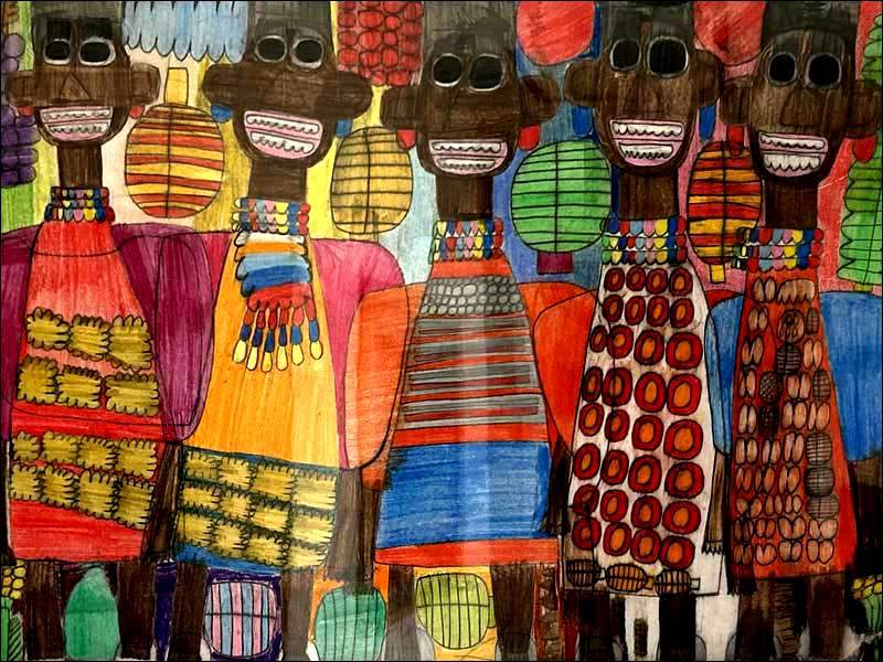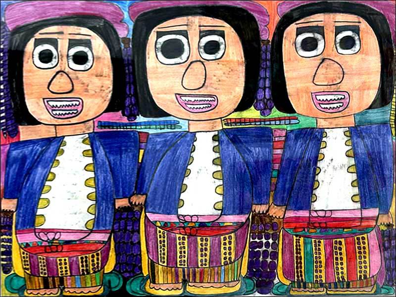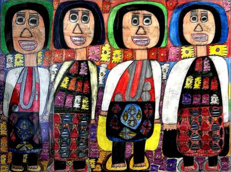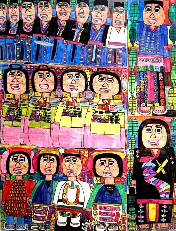 民族衣装が教えてくれるのは人類が環境と調和し、信仰と知恵をもって服を作り上げてきた歴史です。彼女がどのようにそれらと出会ったのかはわかりませんが、おおらかで平和な文化を作者の感性が受け止めたこれらの絵を見ることが出来たことはとても幸運なことと思っています。
