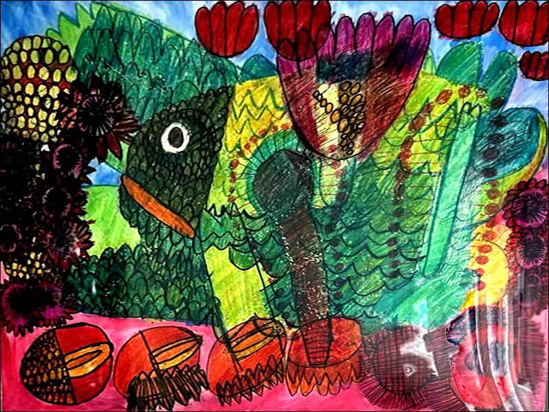 ほかにも、花や鳥を描いた絵の中で、「ぶどうとアコーディオン」はボタン式アコーディオンのボタンとぶどうの実を連想したのでしょうか、その発想に感服しました。